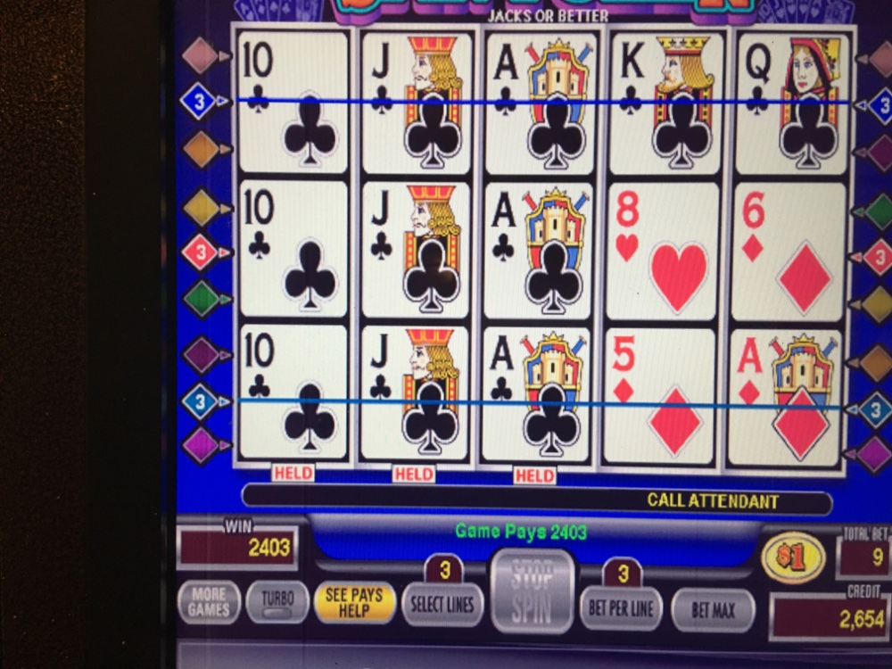 Trial number two on DDS was avtotal failure. About 40 consecutive dud hands. However, I scraped it before the 500 bankroll was gone. I started playing Joker kings on my favorite 800 for bet one machine and got 5 of a kind right away for 400 bucks at bet 2 per line. I took a break and last night switched the game on the same machine to job. Bummer only 9/5 but playing the clone and out aCouple of hundred, I got very lucky snd got this Royal.