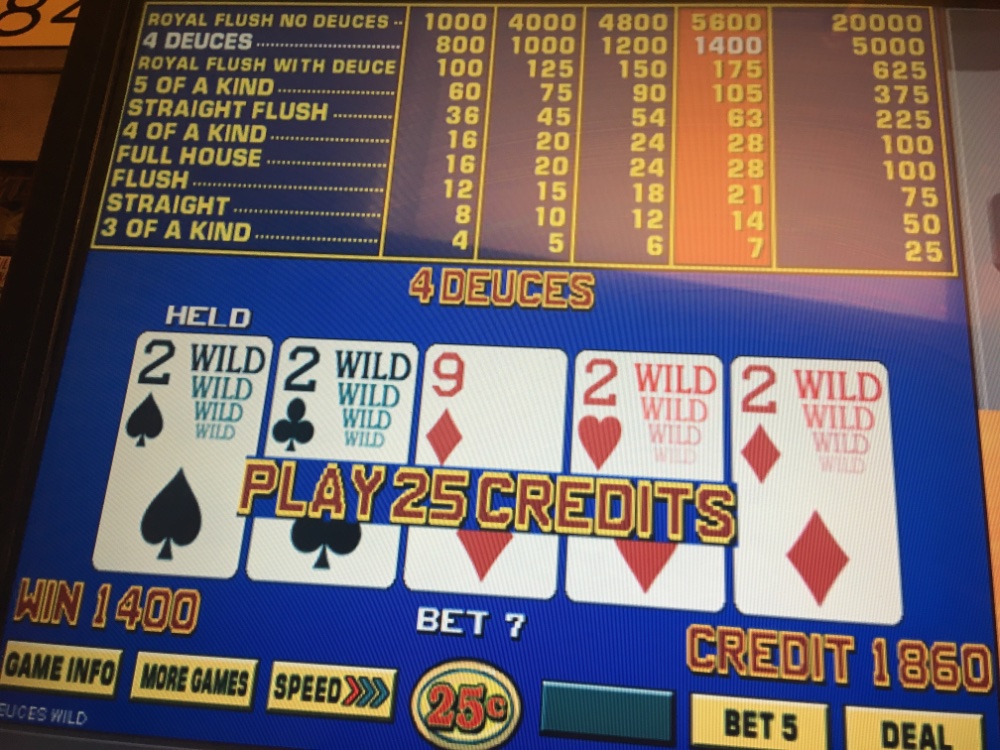 Had an overall decent trip last evening and today at Mohegan Sun. I must say I was sonewhat preoccupied with concerns for the Trumps and people surrounding them as the news continued to evolve. The Mrs. was pretty lucky. She hit a nickel double double bonus game with quad threes with a 10 X multiplier. That was good for 8000 nickels. Just before we went home, we played an hour or so and she hit five aces on the quarter double down stud game playing bonus deuces wild. She only had 2 quarters bet, but it was good for 200 bucks additional. My night started out ice cold and I didn’t have a chance to try the single dollar play and see if I would hit another Royal short coin. I will follow up one day next week when I play alone as it might turn into a marathon. I finally hit quad deuces which brought me back to within 100 bucks or so of being even. I have to ask the Mrs. if she still has the pictures in her phone of her hits. If so I will post them. A couple of mine are attached from last night.