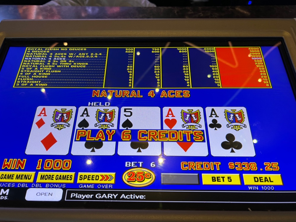 So much for that old standby. I understand that B Bar machines have all been downgraded. That was my scene. I'll take a last nostalgic trip at some point to see for myself out of curiosity. Who can even concentrate on VP at HR with the deafening music? Prolonged play there would be torture.