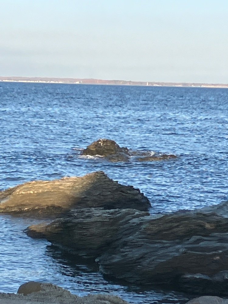 Our beautiful stretch of fall weather continues. Here’s a shot from my beach walk yesterday. On one picture, way in the distance, you can see Lighthouse point with the white Lighthouse. The other picture is of potato rock. At low tide, it’s on dry land and looks just like one.
