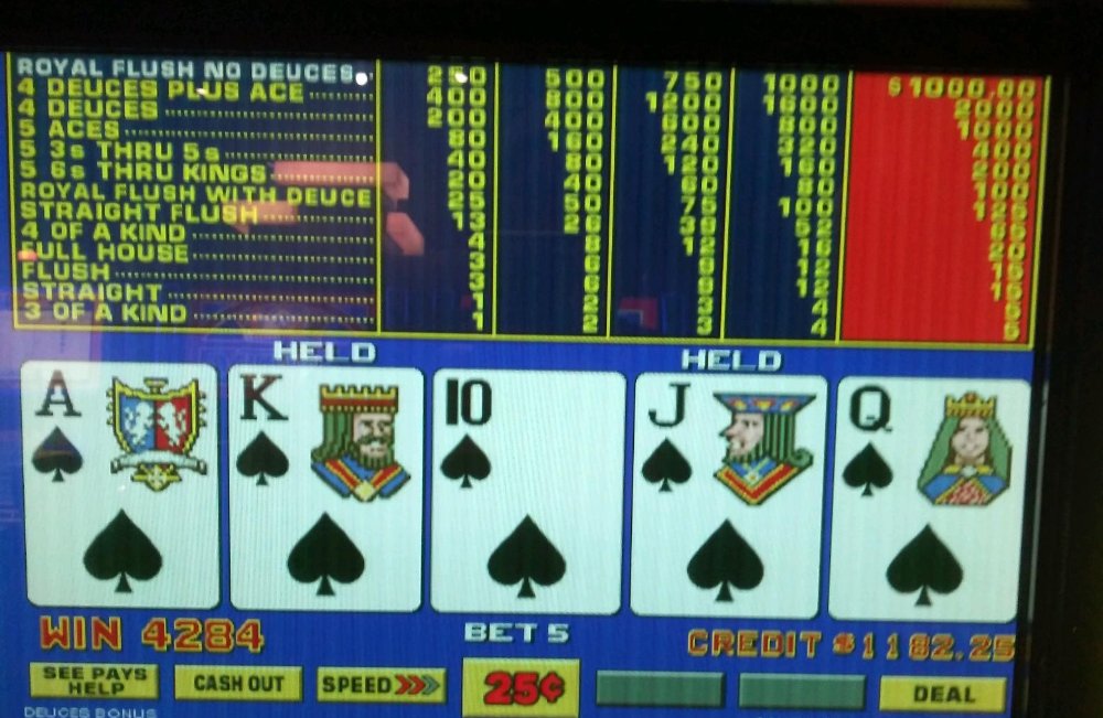 My buddy got this on the other night on Bonus Deuces progressive game. No idea if it's the correct play.olds442jetaway wrote: ↑Tue Feb 18, 2020 1:36 pmNo big deal at all. Lots of folks hold A10 but I dont. I probably pay a bit of a penalty as well for not holding 2 to a royal on a deuces wild game.