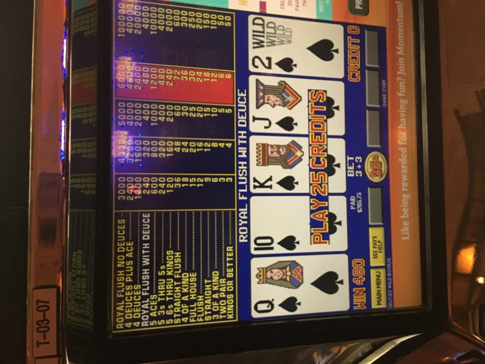 I guess I have already posted about getting destroyed on the new tax law, my greedy State taxing us on Gross gambling winnings, and cutback by the casinos on both comps and pay tables. So far sticking to my guns and caught a couple of nice cool hits tonight. The nickel Royal was at Foxwoods playing a 96 percent game and the wild royal at Mohegan Sun was on DDS deuces wild. If I can maintain this pace, there could be a couple of his/her Mercedes Benz’s down the road a piece just based what we lost in each of the last several years. I also looked up just now on the State of Ct portal the Dec/Jan handle for both Ct casinos and as I predicted, the slide continues. Mohegan Sun’s and Foxwoods handle was off about 100,000,000 between