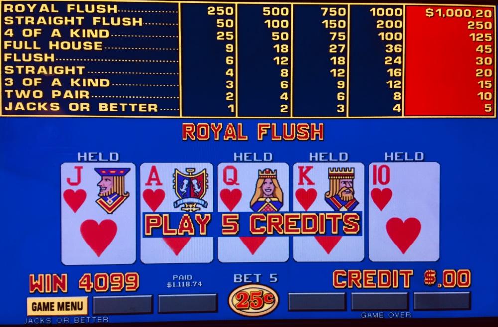 5X Tier Credits. But the poor pay tables on upstairs VP will put most players in arrears. Fortunately, I was dealt a premium quad to render that peccadillo moot. Caesars, you slay me.