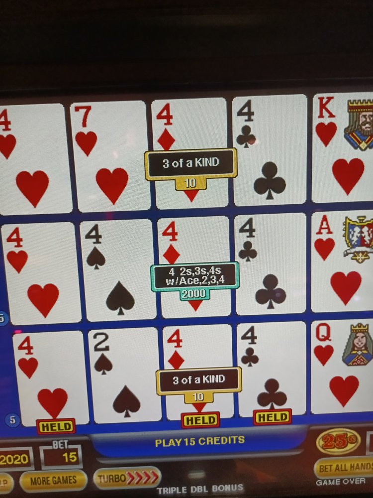 It is nice and new and off course filled with slot machines. The VP was sparse- most Game Kings all had the 6 same games on them: JOB, BP, DDB (9/5), TDB (9/5), DB and deuces. Quarters and halves were worse. I didn't see any progressives. I was hoping for a 5 Star machine for some Dream Card or Quick Quads, but no. There was some All Stars and the usual Ultimate X and Ultimate X Gold, Hot Roll, ect.