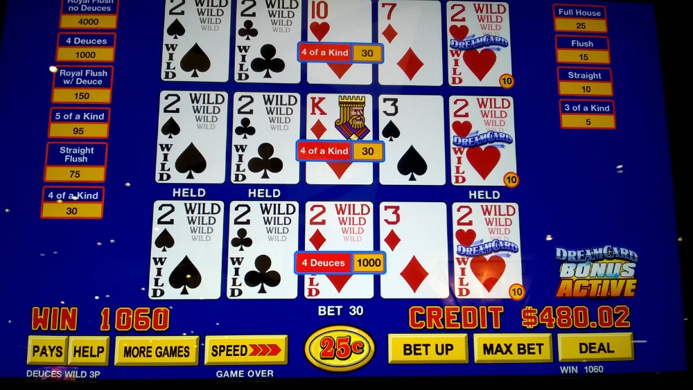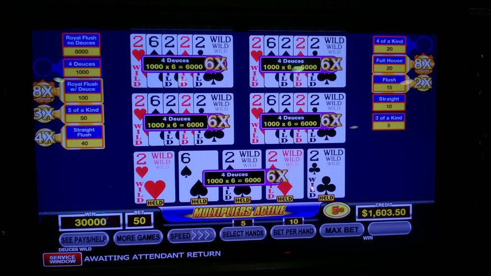 I remember a few hands earlier you were dealt 3 deuces and 2 10s for 5 of a kind.