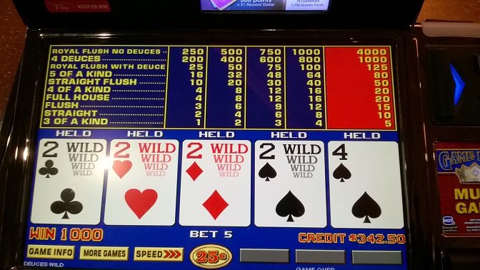 I told my wife I bet we play quarters the deuces hit. I put in a 100 and we don't play 10 hands at $1.25 and them deuces are dealt!