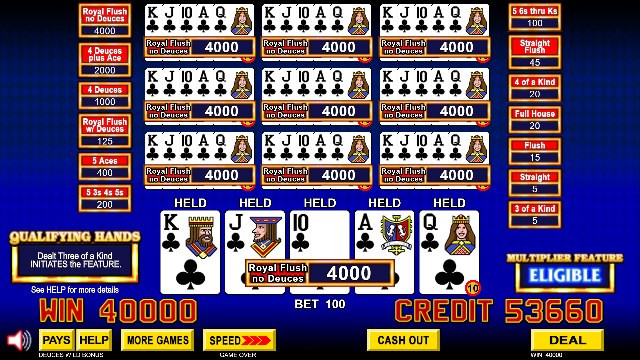 A phenomenal hand by Mick2646 secured 40,000 credits. In a casino, playing quarters, that equals $10,000.00!