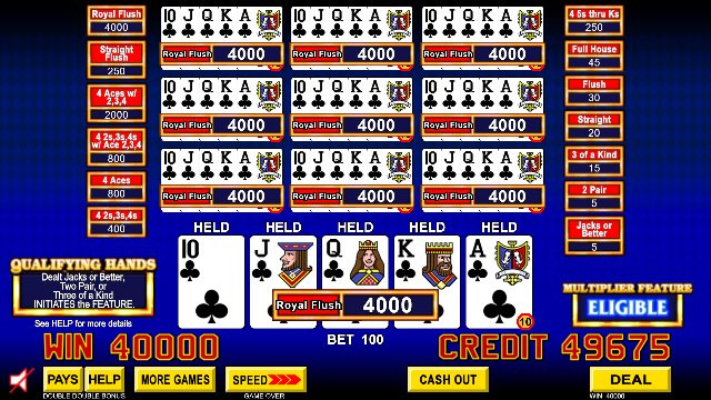 A superb hand by Bouncy, bringing in 40,000 credits. At a casino playing quarters, that would be $10,000.00!