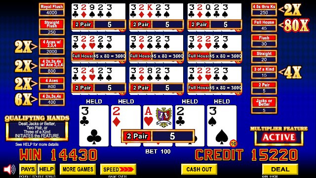 A remarkable hand by Cardzfan82, collecting 14,430 credits. In casino terms, that's $3,607.50 playing quarters!