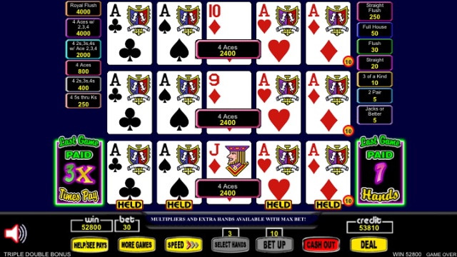 What an incredible hand Bird33bc had in this game, earning 52,800 credits. In a casino, playing quarters, that would be $13,200.00!