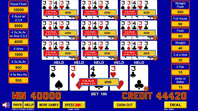 An extraordinary hand by 111Penny yielded 40,000 credits. Casino quarters? That’s $10,000.00 right there!