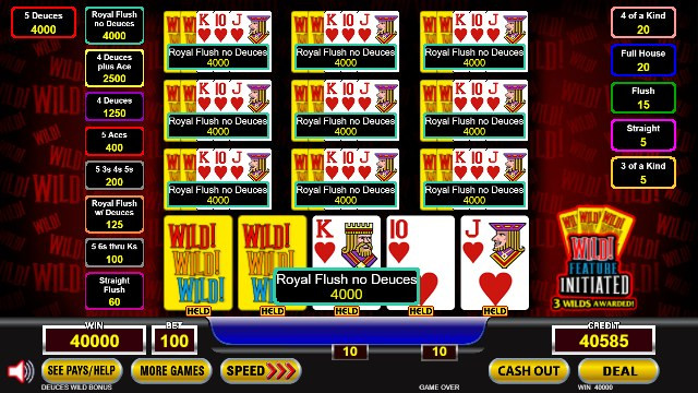 In this contest, Rosalie pulled off a fantastic hand for 40,000 credits. If you were playing quarters, that hand would be worth $10,000.00 in a casino!