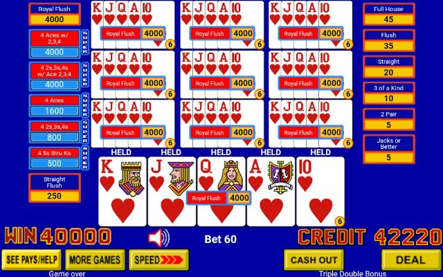 In this contest, Pattiep1603 pulled off a fantastic hand for 40,000 credits. If you were playing quarters, that hand would be worth $10,000.00 in a casino!