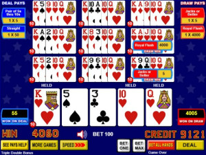 Deal Draw is an improved version of the old classic, Double Pay Poker. It's a fun bet with action on the deal and on the draw! Any winning combinations dealt in the opening hands are paid on the deal according to a unique "deal" pay table. After the deal, hold promising cards and draw to improve the hands, and get paid again for any winners at the final outcome according to a traditional, familiar pay table. Getting paid twice is awesome, and with Triple Play, Five Play and Ten Play options, your wins can really mount up!
