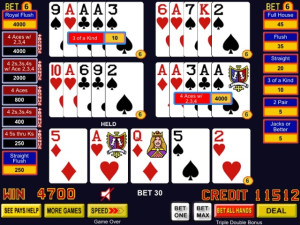 A 4-of-a-kind hand is a thrill for any player. As a tribute to serious quad-seekers, a 6-credit bet awards the standard win for a 4-of-a-kind, and initiates a distinctive pick 'em bonus round. In the bonus, 53 cards are presented face down - a standard deck plus one joker. The player is prompted to select 1, 2, or 3 cards revealing bonus wins up to 4000 credits for the Joker.