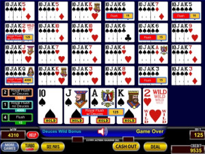 The game allows you to play 25 hands at once with bets of up to five coins per hand. The first 5 cards are dealt face up. You choose which cards to hold, and those cards are automatically held in all 25 hands.