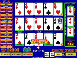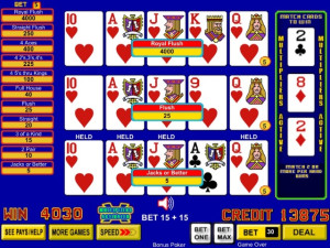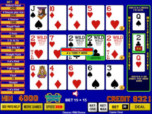Earn multipliers when any of the three bonus cards appears in your hand. Play max bet for the chance at up to an 11x multiplier during the bonus game. Three bonus cards are drawn from an independent, 52-card deck. Discarded cards are not used when drawing the three bonus cards. Multipliers are awarded for matching one or more bonus cards according to the Multiplier Values table.