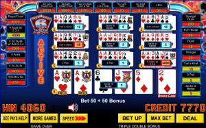 An exciting version of Triple Play where players see the first five cards, make their hold selections, and draw into their hands. During the draw, the replacement cards are dealt along with a SIXTH card for each hand.