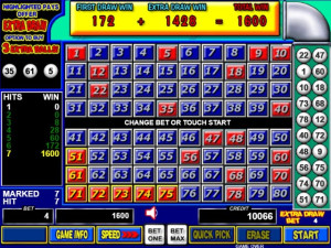 Classic Keno with a great Bonus feature. After rounds with a certain number of matching numbers, you have the option to make an additional 4 credit bet and draw 3 more numbers to increase your winnings!