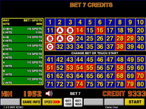 246 Way Keno is a keno variation with unique win combinations matching spots that correspond to lettered number selections.