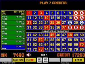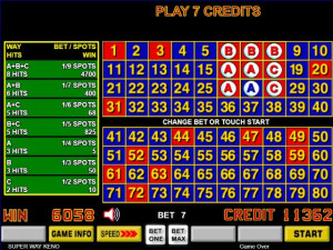 Super Way Keno is a keno variation with unique win combinations matching spots that correspond to lettered number selections.