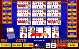 Building upon the excitement of Peek and Play Poker which first gave players a look at the next draw card, Super Peek and Play adds the option to hold or burn your "peek" bonus card. When the card plays well with your hand, hold it for a guaranteed draw card on all lines. Not a helpful card? Burn it and get fresh cards on the draw for more winning opportunities.