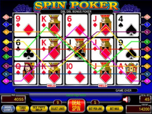 A true casino classic, combining video poker with the excitement of a reel and slot pay lines. The first hand is dealt on the center line. Cards you hold are also held on the top and bottom lines.