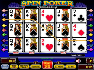 A true casino classic, combining video poker with the excitement of a reel and slot pay lines. The first hand is dealt on the center line. Cards you hold are also held on the top and bottom lines.
