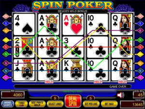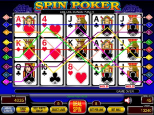 A true casino classic, combining video poker with the excitement of a reel and slot pay lines. The first hand is dealt on the center line. Cards you hold are also held on the top and bottom lines.