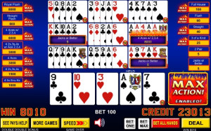 Max Action Poker is an exciting game with one simple premise - big jackpots in all your favorite games. Each additional credit wagered beyond the normal 5 per hand will give your jackpots an increasingly higher payout. Royal flushes pay up to 8,000, four of a kinds pay 2, 3 or 4 times the normal jackpots, and full houses pay double.