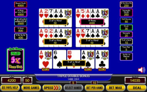 A wonderful blend of the ever-popular stalwarts Wheel Poker and Super Times Pay Poker. In addition to the Super Times Pay multiplier people love, there's now a "wheel" bonus. Multipliers now occur roughly every 9 hands! The wheel top award is 4,000 credits. Nothing complicated, just good fun.