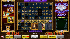 Da Vinci Diamonds Keno boasts more bonus features than ever with multipliers up to 6X and a free games bonus with falling jewels that award additional draws.