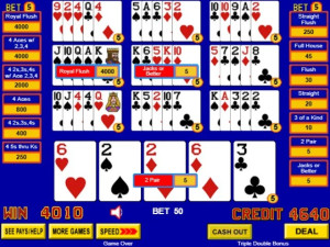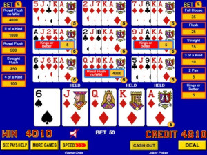 Play ten hands at once with bets of up to five coins per hand. The first 5 cards are dealt face up. You choose which cards to hold, and those cards are automatically held in all ten hands.