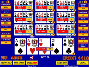 Play ten hands at once with bets of up to five coins per hand. The first 5 cards are dealt face up. You choose which cards to hold, and those cards are automatically held in all ten hands.
