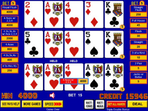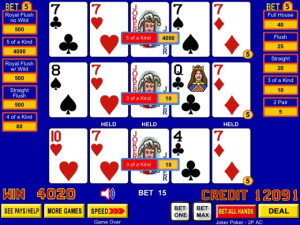 Play three hands at once with bets of up to five coins per hand. The first 5 cards are dealt face up. You choose which cards to hold, and those cards are automatically held in all three hands. After hitting the draw button, you get three different draws from three different decks. Triple Play Poker, IGT's most popular video poker game, includes Jacks or Better, Deuces Wild Poker, Double-Double Bonus Poker and more.