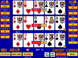 Play three hands at once with bets of up to five coins per hand. The first 5 cards are dealt face up. You choose which cards to hold, and those cards are automatically held in all three hands. After hitting the draw button, you get three different draws from three different decks. Triple Play Poker, IGT's most popular video poker game, includes Jacks or Better, Deuces Wild Poker, Double-Double Bonus Poker and more.