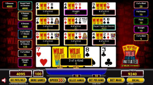 Wild Wild Wild is a fast-paced game that offers up to 3 Wild cards to the deck for every hand played when the bonus is active. The random bonus occurs roughly every other hand. More wild cards means way more quads and Royals!