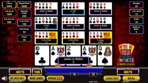 Wild Wild Wild is a fast-paced game that offers up to 3 Wild cards to the deck for every hand played when the bonus is active. The random bonus occurs roughly every other hand. More wild cards means way more quads and Royals!