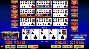 With multipliers up to 100X, this game is sure to take your breath away. Specific dealt hands trigger the bonus, where multipliers are awarded randomly to pay categories and create huge winning opportunities. Imagine a simple Full House, times 80... which could be worth 40 x 80 for 3,200 credits!