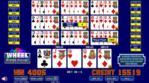 Wheel of Fortune, one of the most successful casino gaming brands, is now available as a video poker theme. In Wheel of Fortune Poker, dealt winning hands award a letter that may or may not populate the puzzle. A winning hand can also randomly solve the puzzle. Once the puzzle is solved, the player is awarded a wheel spin with a top award of 20,000 credits!
