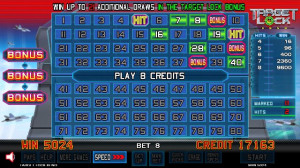 Keno with fighter jets and an action-packed bonus! Select three additional "target" spots on the board. If the three targeted spots are hit during the draw, the bonus round begins. In the bonus round you can select five additional bonus targets, which can award free games or multipliers throughout the bonus!