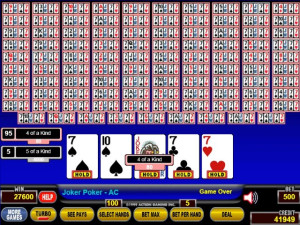 Video poker just got 100 times more exciting with the Hundred Play Draw Poker game! Players now have the opportunity to play 100 hands on the same screen. With poker variations like Jacks or Better, Deuces Wild, Double Bonus, Double Double Bonus, Bonus Poker, Bonus Poker Deluxe, Super Aces Bonus and Super Double Bonus, the possibilities for game play entertainment are endless.