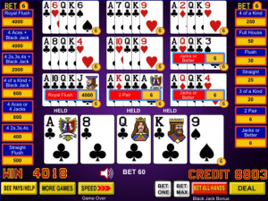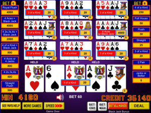 "4-of-a-kind" chasers are in for a treat with this game. New winning hands have been added to the pay tables for a 4k with the Jack of Spades or Jack of Clubs as a kicker. If you are lucky enough to hit 4 Aces with one of the 2 black jacks, you are paid 4000 credits at max bet. That is like hitting a Royal. Let the fun begin!