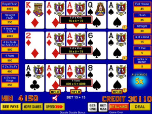 If you love aces, you'll really enjoy Ultimate Aces, where aces on the deal earn you a multiplier - up to 10X! Each ace has a multiplier value associated with it and that value is multiplied against any winning credits for the final hand.