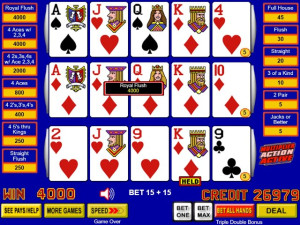 Bet an additional 5 credits per hand to activate the Hyper Bonus Feature. If a winning hand is dealt, a multiplier of up to 12X is randomly selected for each hand and applied to the payout for the corresponding hand. After the draw, each of the three hand wins are multiplied with the corresponding chosen multiplier and awarded to the player.