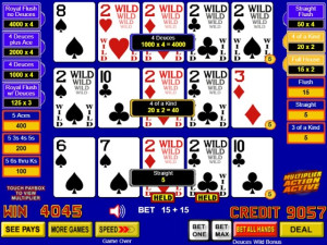 Play Max Bet to enable the Crazy Times Pay Poker feature. In this exciting new game, 2X to 5X multipliers appear next to specific winning hands after the deal.