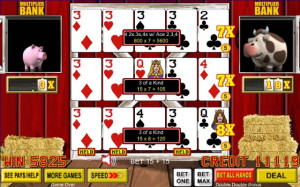 Barnyard Poker uses fun, animated farm characters that grow, explode, and award multipliers roughly every five hands. Multipliers can be anywhere from 3 to 36 times!