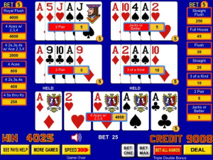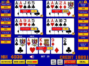 Play five hands at once with bets of up to five coins per hand. The first 5 cards are dealt face up. You choose which cards to hold, and those cards are automatically held in all five hands.