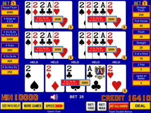 Play five hands at once with bets of up to five coins per hand. The first 5 cards are dealt face up. You choose which cards to hold, and those cards are automatically held in all five hands.