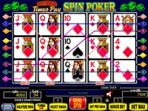 Spin Poker provides a great "cross-over" game for poker and slot players. Super Times Pay adds a mystery multiplier event that players can’t seem to get enough of. The two combined make Super Times Pay Spin Poker™ a game players will immediately recognize and surely play for hours.